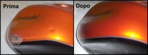 copertina confronto riparazione ammaccatura serbatoio ammaccato kawasaky z750 verniciatura stuccatura bozza
